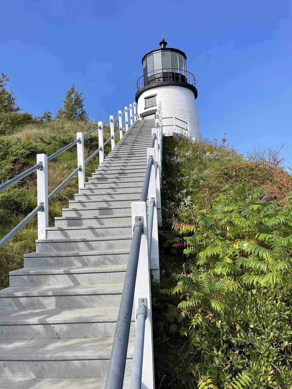 The small town of 1,600 sits just south of Rockland on the Atlantic Ocean; it guards the mouth of Penobscot Bay and lights the way to Rockland Harbor for sailors and fisherman with its entrenched lighthouse built in 1826. The Owl’s Head Light Station Park is small and not well suited for a busload from New Jersey. The park’s flora feels wild and prehistoric with giant ferns, a plethora of pink Turtle Head flowers and a forest floor that looks like a mycologist’s acid trip.