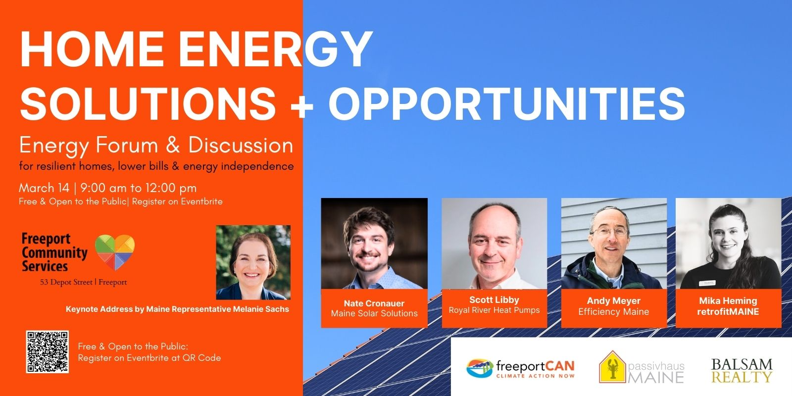 Hosted in partnership by Freeport Climate Action Now, passivhausMAINE, Balsam Realty and Freeport Community Services, the forum will bring together trusted local experts, nonprofits and homeowners to share real world insights on energy efficiency, electrification and renewable energy options for Maine homes.